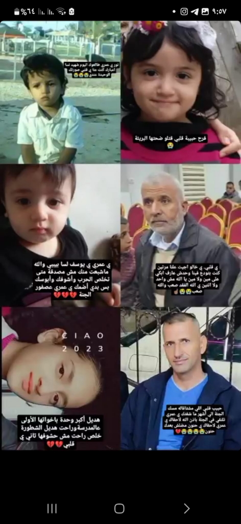 Facebook user Mufida Husam Alabadlah posted a Facebook message honouring her deceased relatives, along with photos of most of the victims.