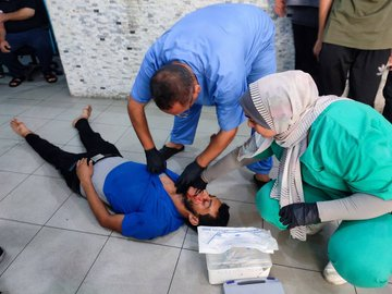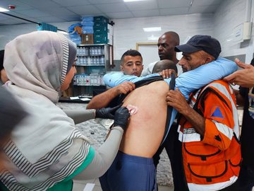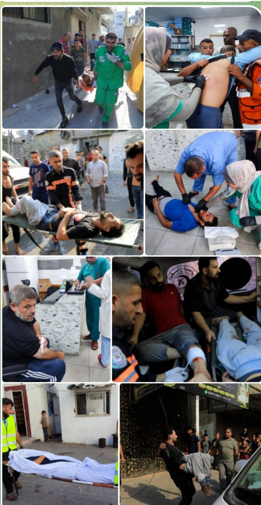 The Palestinian Information Center (@PalinfoAr) also reported on the strike, sharing additional images of victims being transported in an ambulance and receiving medical attention at a hospital.