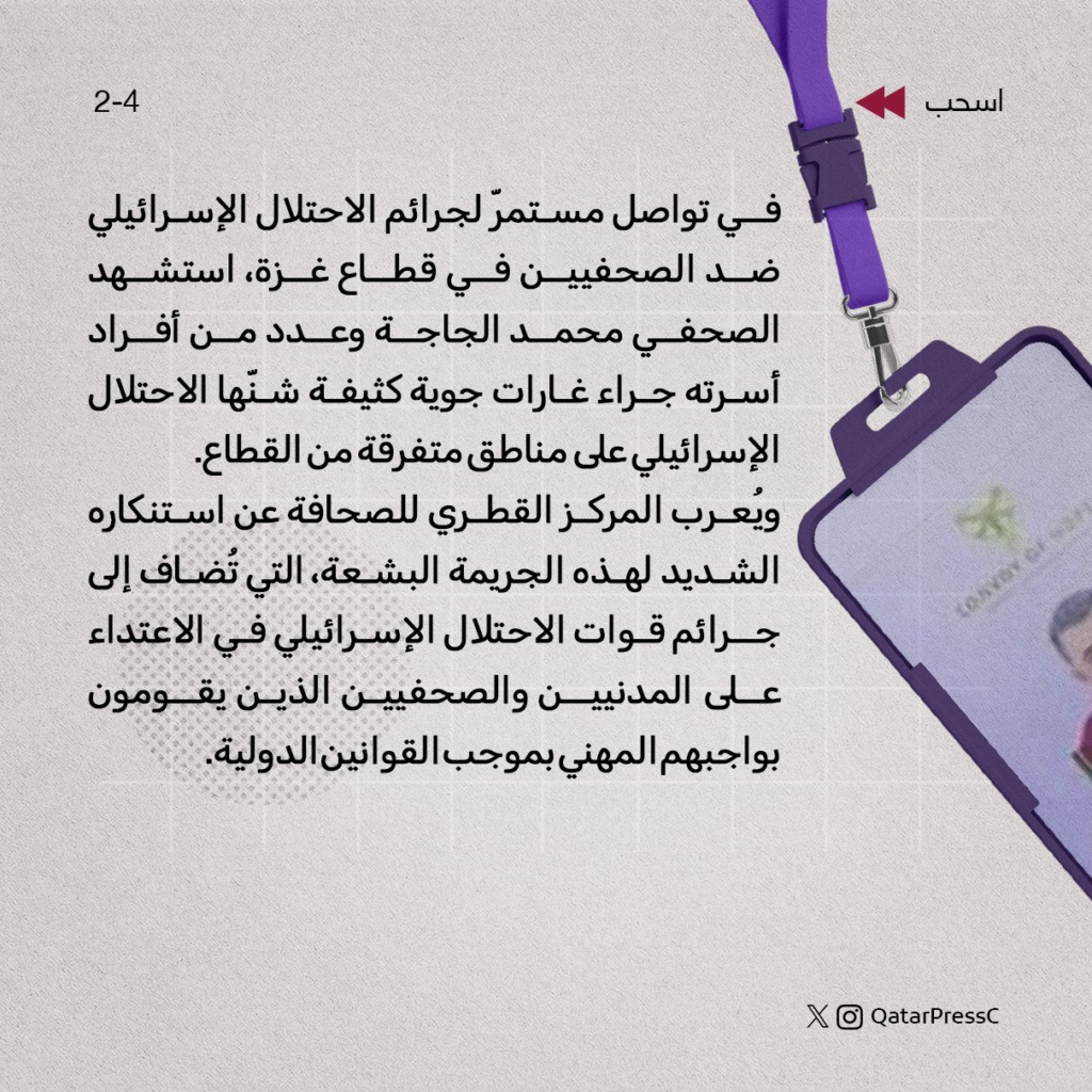 Numerous local and international outlets reported the incident, including the Shehab Agency, Al-Jazeera, and the Committee to Protect Journalists. According to Muhammad Al-Jaja’s sister, Shaymaa Ghanem Al-Jaja, her niece had survived the alleged strike but was injured.