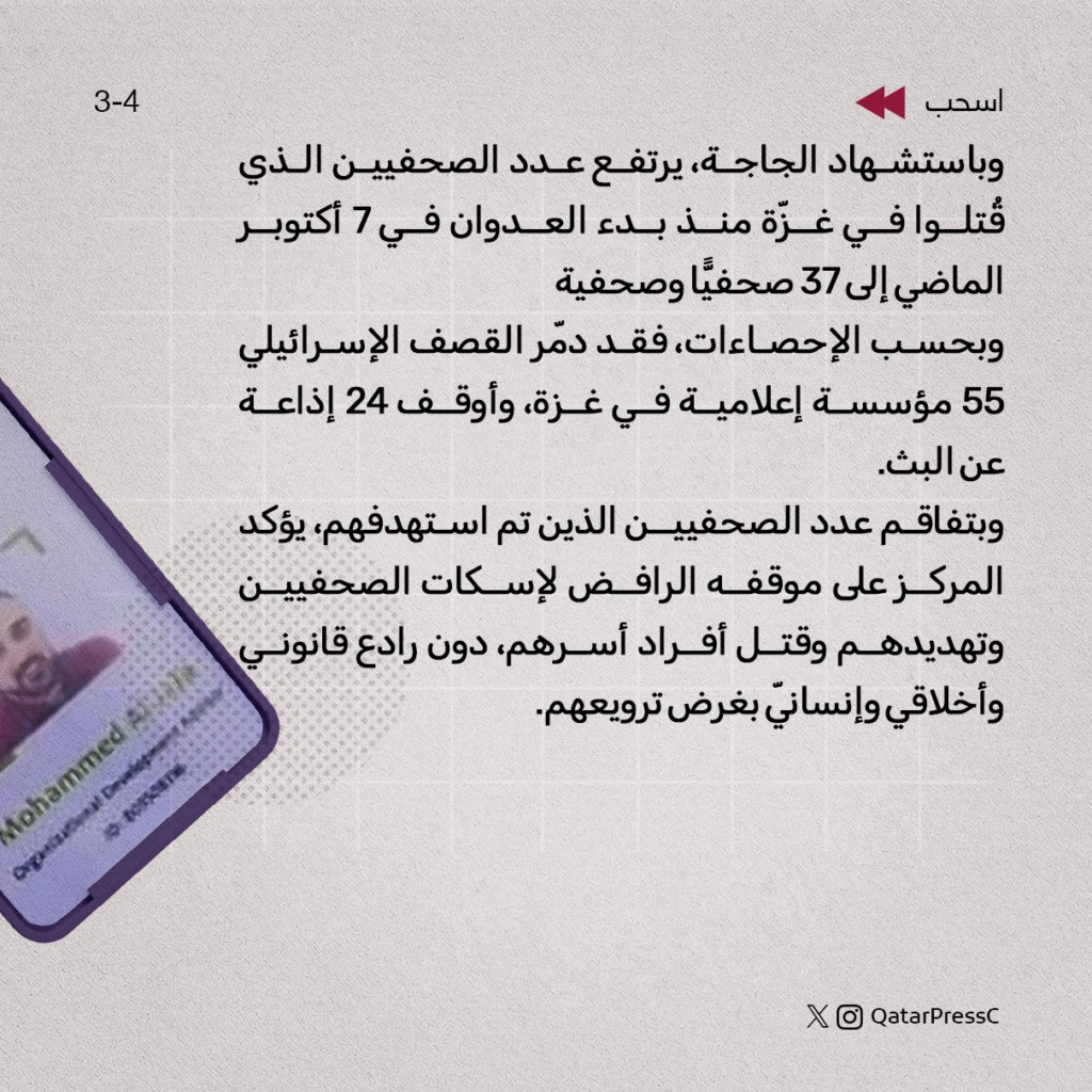 Several international organisations – including the Committee to Protect Journalists and Women Journalists Without Chains – expressed their anger at the alleged attack and called for the protection of journalists and media workers in conflict zones. In a post on their official Facebook account, the WJWC declared that Muhammad Al-Jaja’s killing was a crime that was “added to a list of what we believe to be war crimes against journalists, which include murder, targeting families, destroying journalistic institutions, and restricting the work of journalistic crews.”