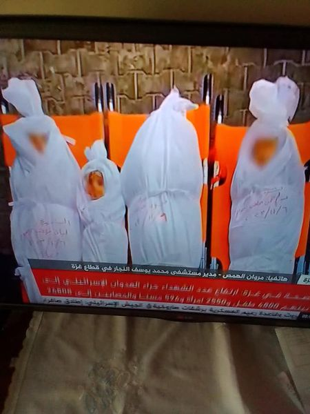 The video of the post showed Talaat Barhoum in his hospital uniform, bidding farewell to his family in white body bags on stretchers, with their faces exposed. They were surrounded by several people mourning and saying their goodbyes at dawn. Several accounts posted a graphic picture of the five body bags, with the face of the youngest exposed. A Facebook post by Amal Hadid shared a memory of the child Abdelrahman (Abdul Rahman Talat Barhoum) holding a poster and smiling at what appears to be a ceremony.