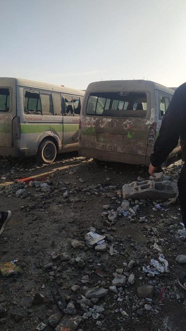Twitter/X user Rami Abdul (@RamAbdu) shared a video showing the immediate aftermath of the strike with people running to the place of the explosion to rescue survivors amidst the clouds of dust, passing by the burnt cars and piles of rubble.