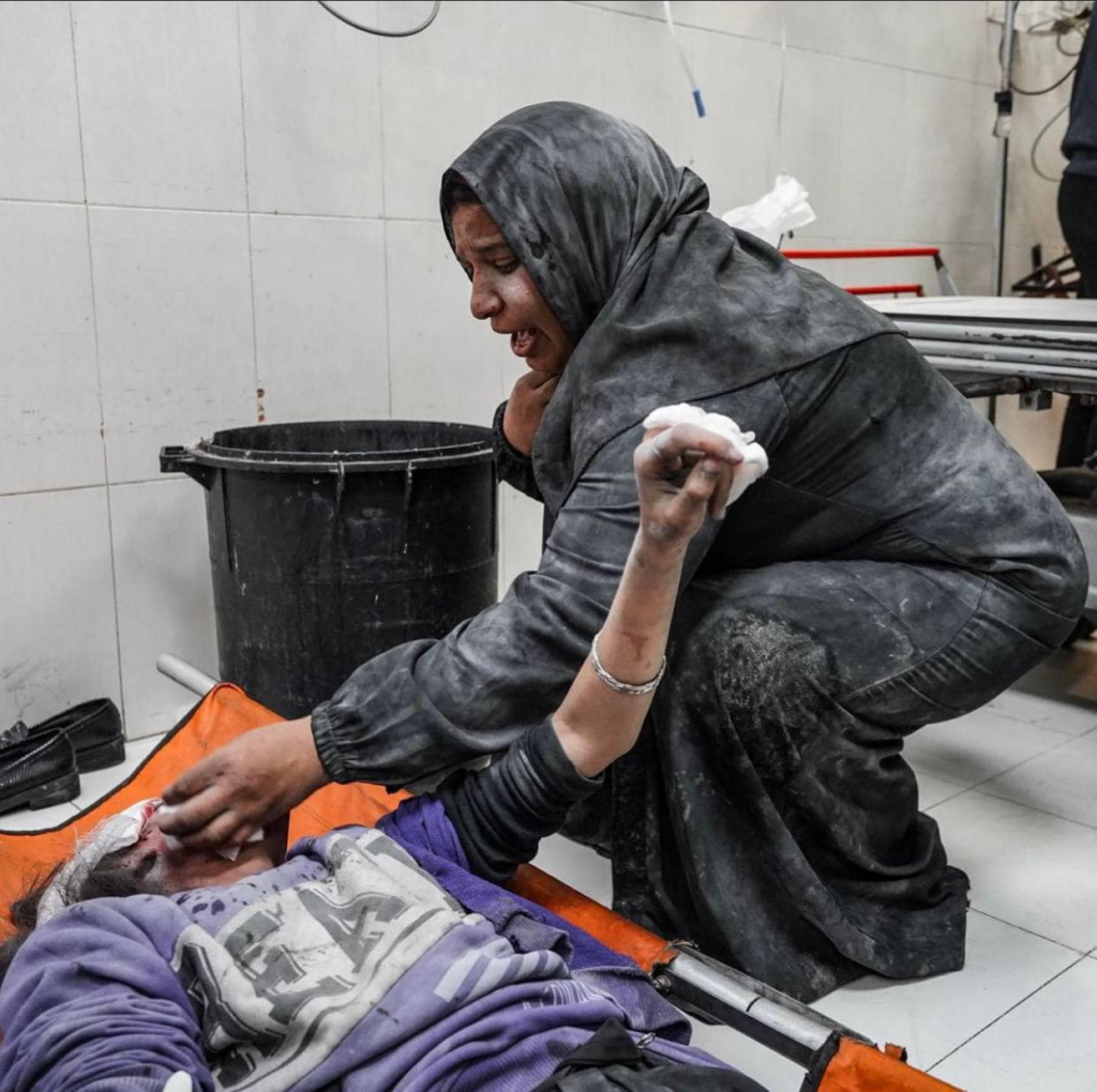 According to Twitter/X user @AJA_Palestine and other media sources, the deceased journalist Ahmad Bedir was standing in front of the journalists’ tent at the gate of the hospital and died when shrapnel hit him. Shehab Agency tweeted a photo of the journalist’s elderly mother holding her son’s lifeless hand. It also posted a tweet mourning his death, attaching an image of the middle-aged bearded man in a beige T-shirt holding a mobile phone and smiling at the camera.