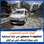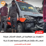 Journalist Ashraf Abu Omra said in a video shared by @QudsPress Twitter/X account that an alleged Israeli drone targeted the medical staff, killing four paramedics and turning their bodies into pieces in Salah al-Din Street.