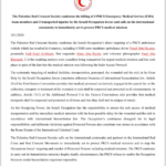 The International Federation of Red Cross and Red Crescent Societies (IFRC) also condemned the killing of four ambulance team members of PRCS and the two patients they were transporting. Both IFRC and World Health Organization offered their condolences to the families and colleagues of the victims.
