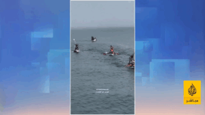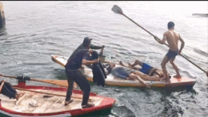 Zakaria Baker attached a video to his post showing at least seven small fishing boats, each paddled by one or two individuals, returning from the sea toward the coast, where they were met by a large crowd. The first boat arriving at the shore carried two non-moving individuals — one wearing blue shorts and the other a grey shirt with the Nike logo “Just Do It.” Both appeared to be alive as they were carried to an ambulance. Numerous people along the coast can be seen assisting, including carrying the injured on stretchers and other improvised devices toward waiting ambulances.