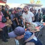 Several videos circulating on social media hours after the strike corroborated the eyewitness testimonies cited by Anadolu Agency and other local sources. In one video, dozens of people are seen running toward what appears to be the targeted area, some screaming for help or holding their heads in disbelief. Others, including several children, are seen fleeing in the opposite direction, in a visible state of panic. One man tries to help a woman to her feet while covering a wound on the left side of her head. Another man carries a seemingly unconscious young boy in his arms, stopping at one point to shout despairingly at the sky. One of the users who shared this video on X, @tamerqdh, noted that “entire families were killed and torn to pieces” and that the strike happened “at a time when the Israeli…army is asking the residents of the northern Gaza Strip to head south for their safety.”