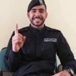 Sultan Zamani also grieved “the martyr Yousef Ateeq Masmah” along with an image of Yousef in the same uniform, a police uniform, standing in front of the Deir al-Balah police station.