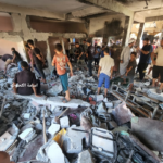 Ahmed Abdel Rahman, who witnessed the attack, described a “terrifying” scene where survivors and rescue teams were “collecting the body parts of the martyrs scattered inside the school.” He recounted that “the body parts were burned and torn apart by Israeli warplane missiles and the blood mixed with the remains of the walls and floors that bore traces of the crime.” Ahmed Abdel added that he saw the foot of one of the “martyrs” lying in the corner of one of the targeted rooms, where the belongings of the displaced, “including children’s toys” were “soaked in blood.”