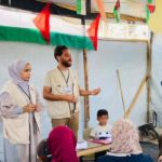 Ghaida Yousef’s father Yousef al-Mukhtar Abo Rahma (member of the General Assembly of the Palestine Mukhtars Association) mourned his daughter in a heartfelt post. Ghaida Yousef whom her father called a “companion” in the nursing profession, was “martyred” while working with the Ard al-Insan Association, treating patients and feeding the displaced at the Rafidah School. The post includes a photo of Ghaida Yousef proudly posing with her father, wearing a red graduation cap embroidered with the letters “GH.”