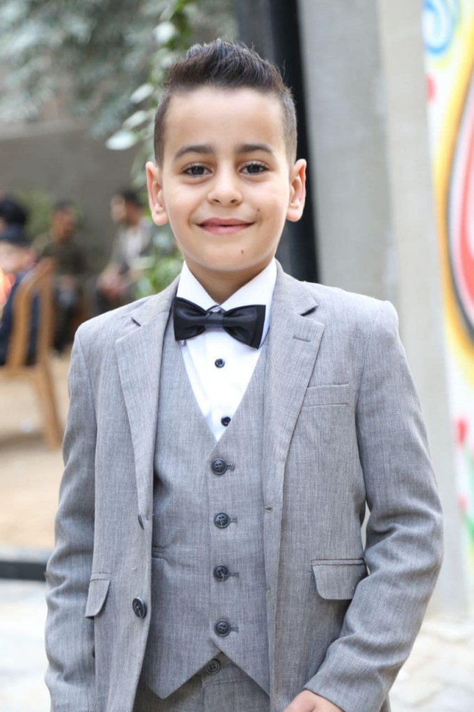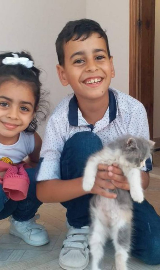 The Nuseirat Camp Facebook page wrote of Adam Hossam Azmi Muslim, “Fifth grade, very smart at school. He loved the Quran and memorized a lot of it. He loved basketball and used to train with the youth of Al-Maghazi Basketball Camp. Very popular and active.” The post was accompanied by a photo of the smiling young boy holding a kitten.