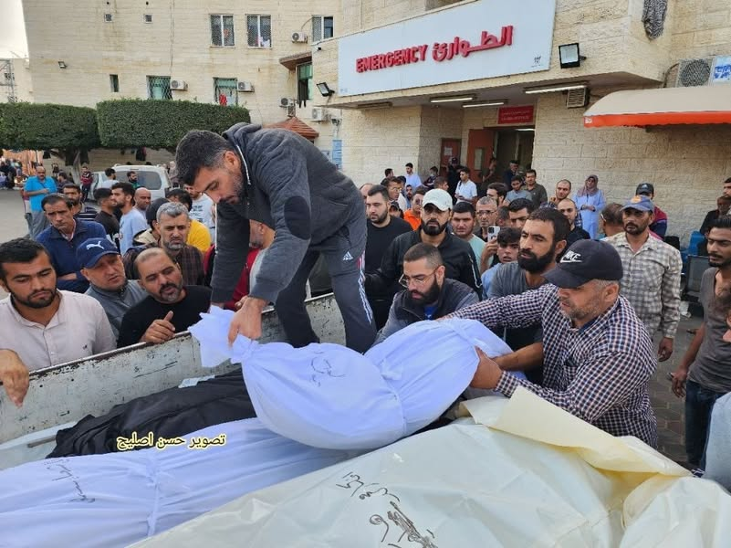 A video posted on Facebook by Mohamed Badwan showed at least nine shrouded bodies laid out on the street, surrounded by a crowd of mourners. Alongside the video he wrote, “May God have mercy on the martyrs. My father, mother, brother, uncle, aunt, cousin, nephew, and grandmother. In the bombing of our house today. God is sufficient for us, and He is the best disposer of affairs.”