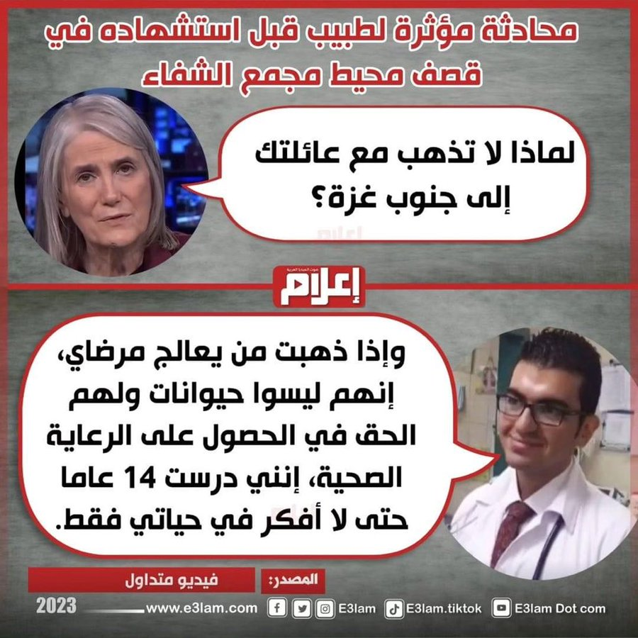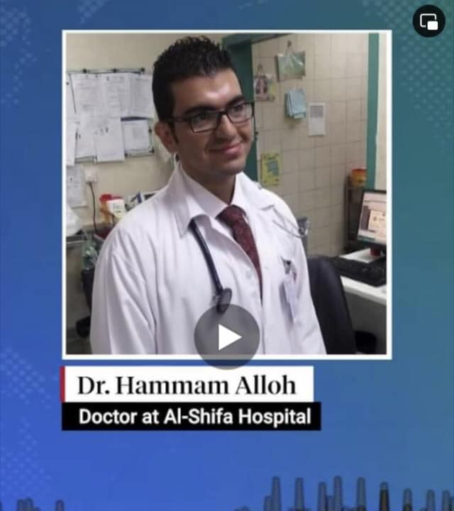 Sources online referenced Hammam’s decision to stay in Gaza City despite the Israeli military’s October 13, 2023 order in which over one million people were given 24-hours to evacuate south of Wadi Gaza. X/Twitter user Mohammed Alhaj wrote that Hammam “refus[ed] to leave [his] patients behind and go to the south”.