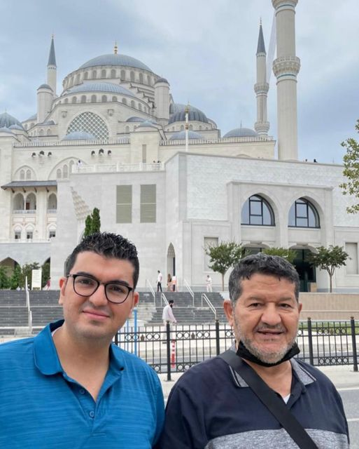 An image originally shared by Mahmoud’s son Mohammed but circulated widely, shows Mahmoud and Hammam standing in front of a mosque resembling the Sultan Ahmed Mosque, smiling at the camera. In the image, the elder Al-Louh is seen with dark, greying hair, grey stubble, and a face mask around his chin.