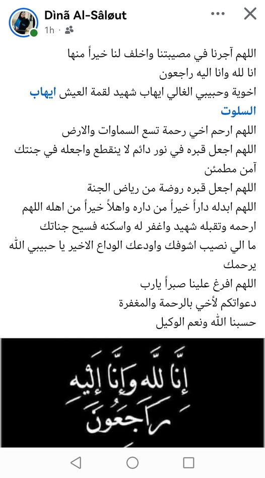 Ihab al-Salut was mourned by his sister’s husband Mohammed A. al-Salut and his neighbor Fares Aldaour who included an image of Ihab posing in front of a car covered in flowers.