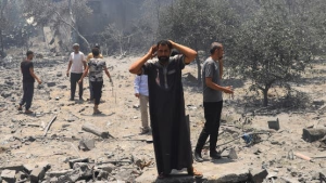 Ameen Abed offered condolences to Khaled al-Majayda’s father and “kind mother” Umm Asaad for the loss of their son who was killed while trying to get food. The Facebook post included an image of a smiling young man sitting in the sand. Mohand Ali al-Majayda also expressed his distress at losing his companion and brother, writing “you made me cry against my will” at his loss and included an image of Khaled smiling in a black long-sleeve shirt. Family member Ashraf Nafiz lamented the endless losses to the al-Majayda family, writing that Khaled’s loss was the 45th person from the family to be killed since the beginning of the war.