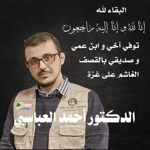 Friends and relatives of the Al-Abbasi brothers likewise published messages of mourning. According to these posts, Ahmed worked as a pharmacist and Mustafa as an anesthesiologist. Haitham Alnajjar stated: “You departed to join your friend and beloved, Eng. Osama al-Zubda, and your uncle, Dr. Jamal… Oh God, how I longed for it! Oh God, how happy I was yesterday when we spoke in our last call, and you told me that you had managed to secure a number of aid packages for the displaced people in the schools… The loss is immense, by God, and may God grant us patience. Indeed, we belong to God, and to Him we shall return. There is no power nor strength except with God, the Most High, the Almighty.”