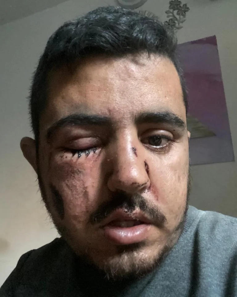 According to @HuDa_NaIm92 (who initially reported that Montaser Mustafa Al-Sawaf was killed), Montaser was a photojournalist for Anadolu Agency, and included an image of him in a press vest with an AA microphone. Montaser posted a few days later on his own Facebook page that more than 45 people had been killed in the strike, “including my mother, father, my two brothers, and all of their children,” and that “I was injured in the face. Unfortunately, I have not yet found a doctor to treat me, as I am in Gaza City and there is no hospital for treatment, not even doctors” along with an image of his swollen and injured face.