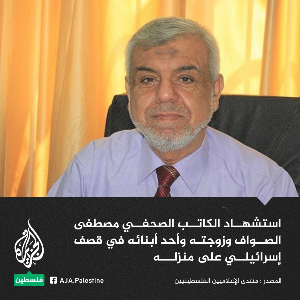 Mustafa Hosni Al-Sawaf (also referred to as Dr. Mustafa) was described by different sources as a journalist and a writer, with one source adding that “we learned from him at the beginning the path towards media life and media appearance”. Anadolu Agency also posted a condolence message for Mustafa, referring to him as a “journalist and political analyst” and “the great journalist and writer Mustafa”. Palestinian Ministry of Culture mourned the loss of Mustafa, pointing out that he “is considered one of the most famous Palestinian media figures and analysts, and has written hundreds of writings and analyzes on Palestinian political affairs.” Literary Hub described Mustafa as “the editor-in-chief of several newspapers and was founder and editor-in-chief of the first daily newspaper published in the Gaza Strip. Al-Sawaf also published a number of books, including a six-part series of articles, Days of Rage (2005), and a collection of political short stories, There Was a Householder (2017).” However, an Israeli Journalist named Roi Kais reportedly accused Mustafa of being sympathetic to Hamas.