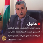 The Democratic Front for the Liberation of Palestine released the statement: “The national leader, Talal Abu Zarifa, a member of the political bureau of the Democratic Front, was martyred while leading the resistance against the barbaric Israeli invasion in the Al-Sabra neighborhood, east of Gaza City, with the martyr Mahmoud Hamami.” Nisreen Abd Al Mun’em wrote: “He was martyred on 5/12/2024 in the field of confrontation and resistance against the enemy.”