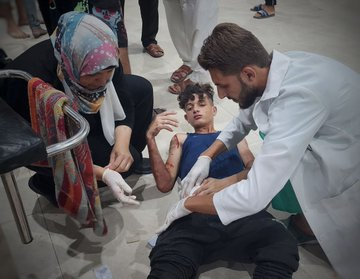 Photos shared by various sources showed injured people in ambulances and at the hospital, including a high number of children being transported in the ambulances or with their injuries bandaged in the hospital. There were multiple photos including children of varying ages with one series of images showing a very young child, no more than two or three years old being treated in the back of an ambulance.