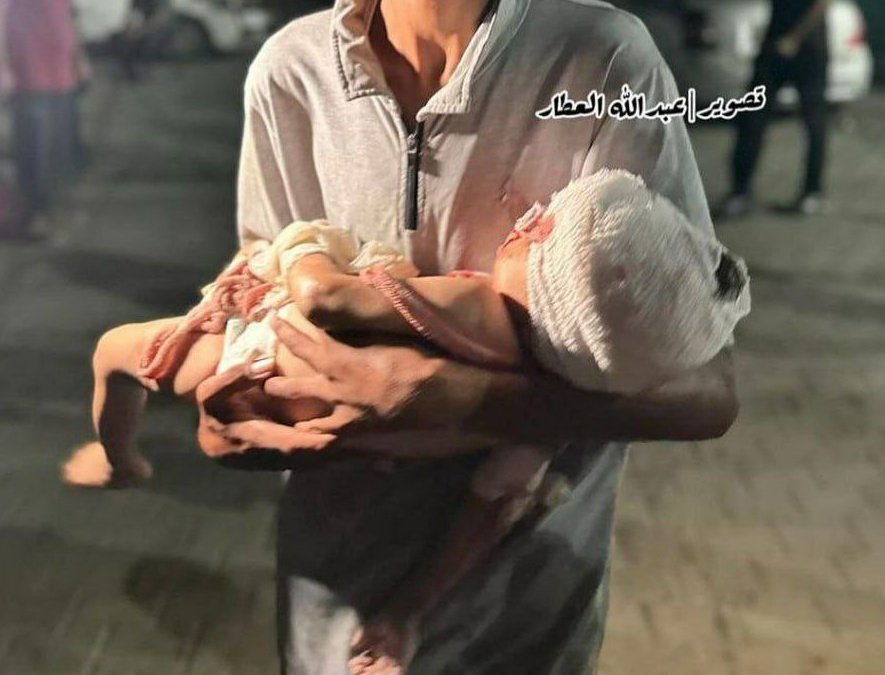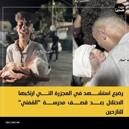 A video shared on Twitter/X by the user @MhmedPs also showed Radwan, an infant with a bloodied bandage around his head and a face with stains of blood, carried by a young crying man. The caption of the video said: “He was born in school and was martyred in it.” Another video shared by the user @AnasAlSharif0 showed the attempts to rescue the child with the help of an IV.