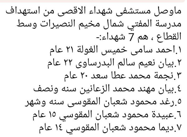 Rana Ali shared a post on Facebook which suggests she was present at the school at the time of the attack. She mourned the deaths of her friends in the al-Maqousi and al-Ghoula families and reported that the displaced people in the school were sleeping at the time of the attack and they didn’t understand why they had been attacked. @Dorktya reported via Twitter/X that the attack specifically hit a classroom on the third floor of the school.
