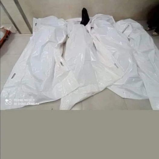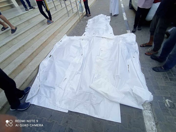 Hasan Al Maquse posted an image of several white shrouds reportedly belonging to the members of the al-Maqousi family.