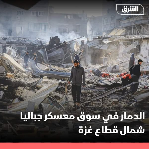 Multiple photographs shared by Ana Ba’es showed the “destruction in the Jabalia camp market” wrought by the strike. KhabarNews24 specified that the strike had been carried out by quadcopter; Biet Dojen Al youm described the strike as a “fire belt”.