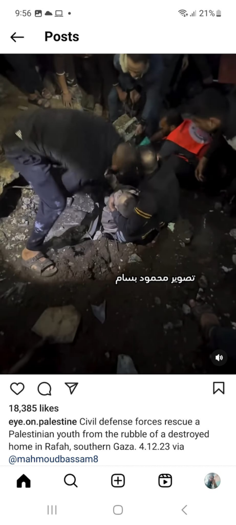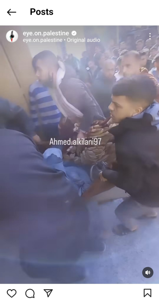 Other videos were more clearly demonstrating the aftermath of the Khalifa Bin Zaid School strike. A video posted by @wasem_sad22 on Twitter/X shows a man rushing a seemingly lifeless child out of the school to get help.