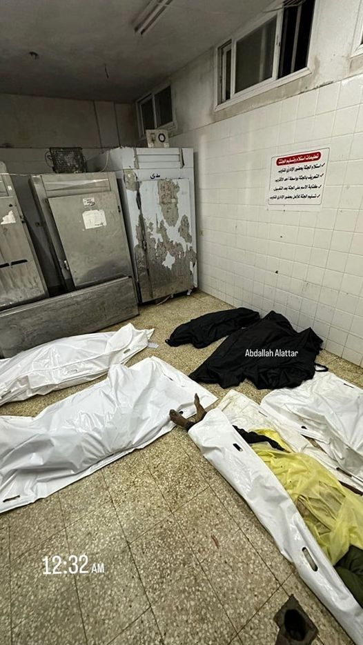 Other social media posts, including those by Adham.adawiduing and Louy Alhersh, featured a picture of the three young boys sitting together in an armchair. The Free November Badisians/The Badisian Revolution posted a picture that showed multiple bodies wrapped in shrouds. The picture was posted under the heading, “The bodies of the martyrs of the Al-Manama family, who were killed when the [Israelis] bombed their home in Al-Maghazi camp in the central Gaza Strip” and includes a timestamp showing 12:32 am. A video shared post-strike showed three blood and dust-covered young girls, receiving medical attention as they sit on the floor of a hospital.