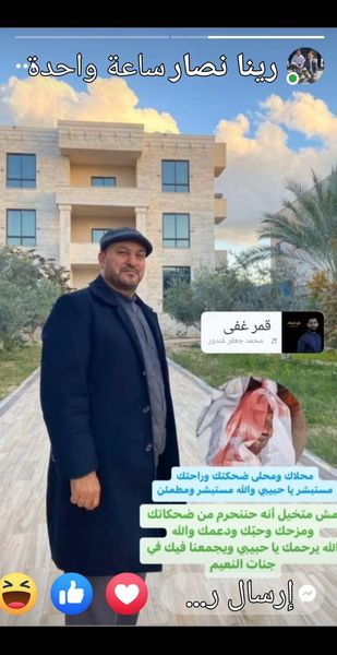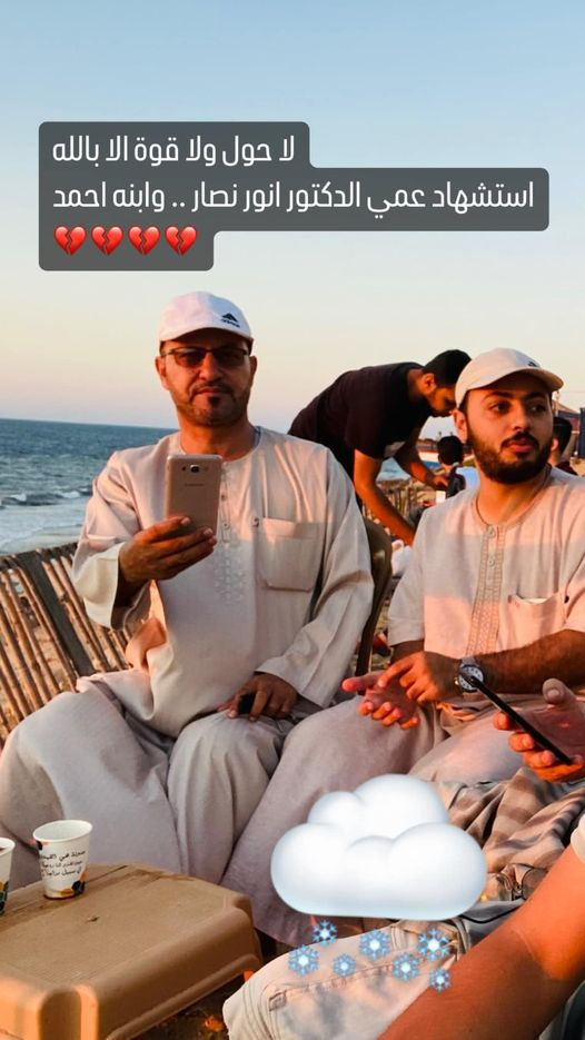 Umm Hatem Aftiha, the sister-in-law of the late Anwar, wrote: “The eye sheds tears and the heart grieves. My sister’s husband, Dr. Anwar Nassar (Abu Osama) and his dear son, the engineer (Ahmed Anwar Nassar), [we] are saddened by your departure.”