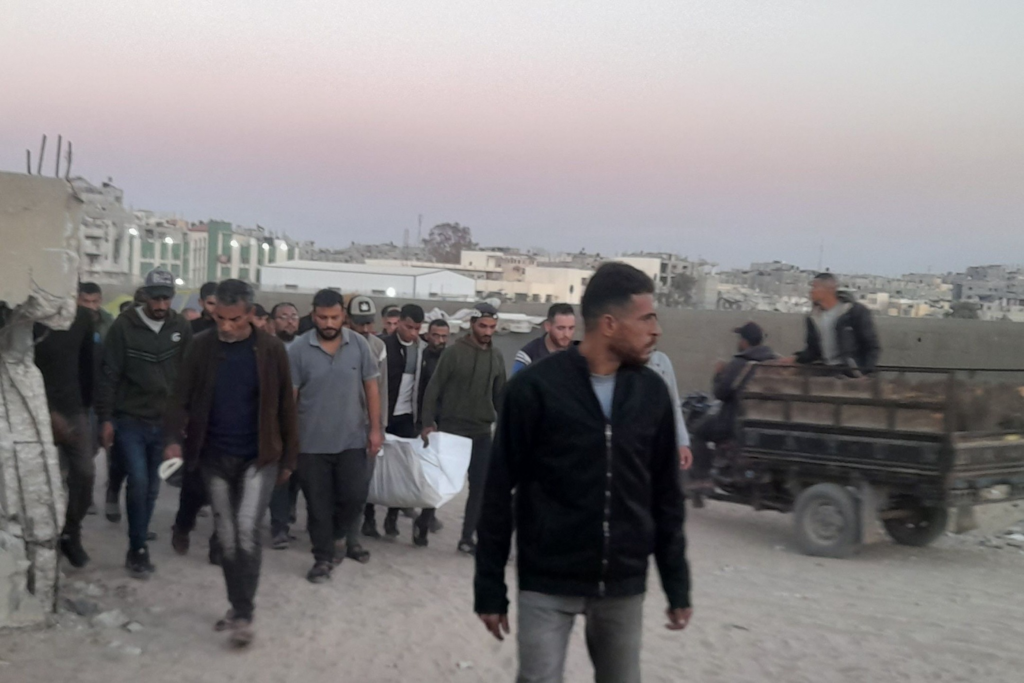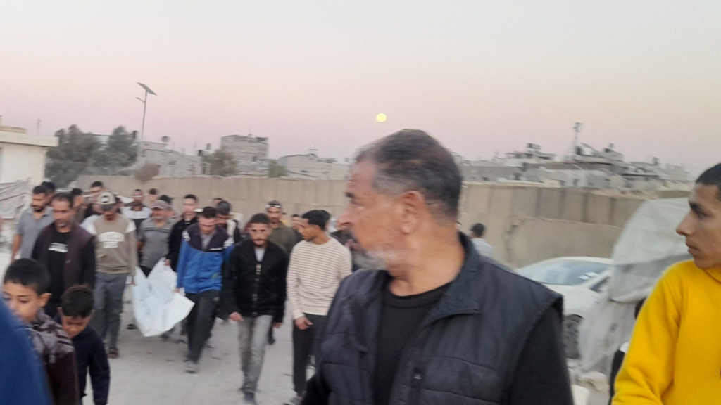 Rafat Abu Dabaan offered condolences to their cousin Ismail Abdel Aal for the loss of his wife and children in the bombing in Mawasi.