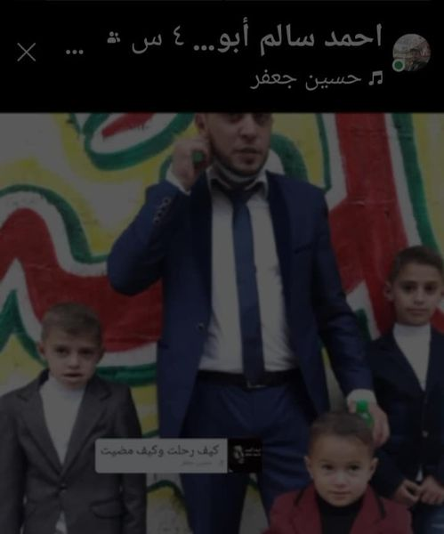 Fadl Salem Abu Anas wrote a tribute to the memory of Abu Youssef, his wife Zainab and their children, sharing an image where one of the men making a meal outside was apparently Abu Youssef. Only one child of Akram Khalil Salem (Abu Youssef) could be identified (Younis Akram Salem).