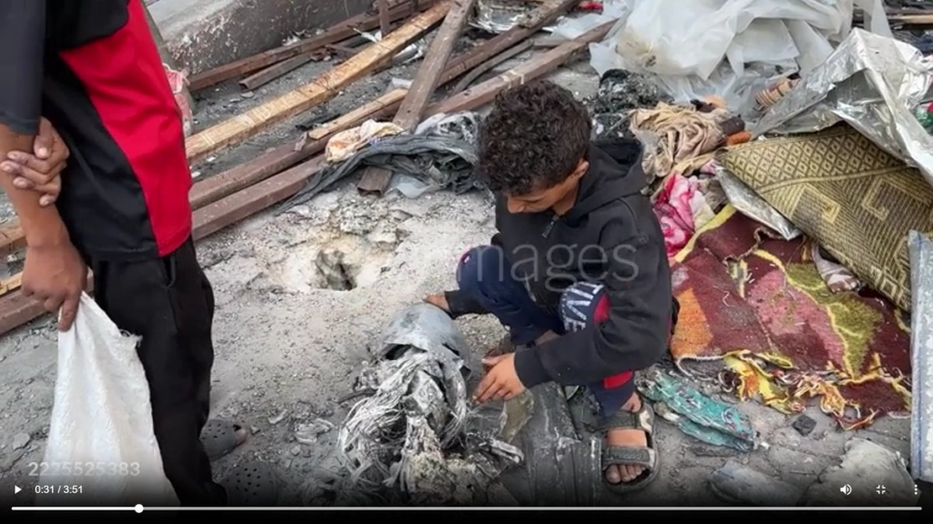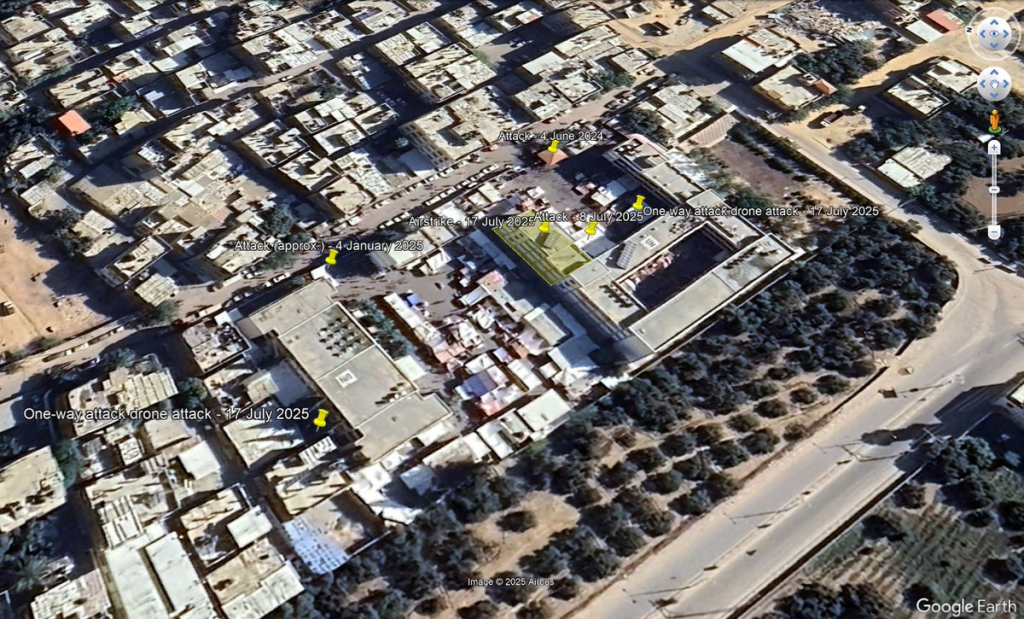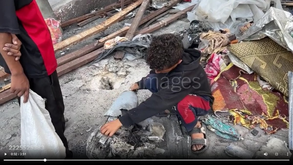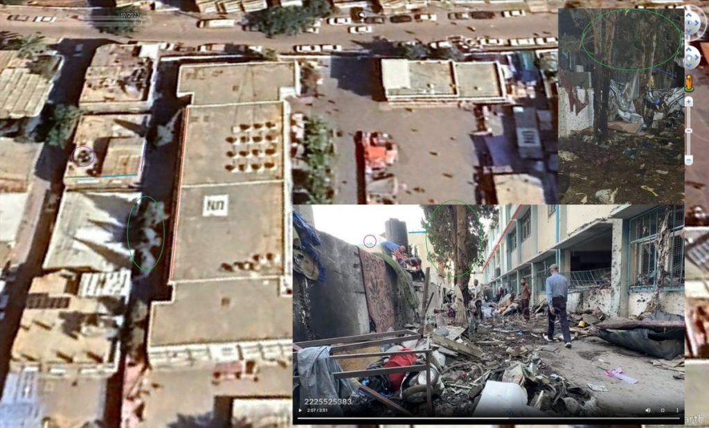 An X user, @NemoAnno, reported geolocation details of the incident, indicating that a tent within the eastern school complex was struck during an Israeli attack. He also shared multiple images of the munition left on the site, alleging those can be remnants of a one-way attack drone.