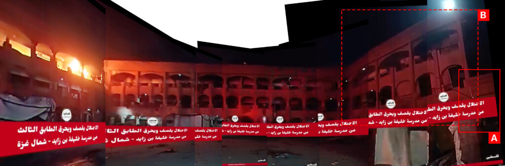 Various videos shared on Telegram and Twitter depicted the aftermath of the bombing of Khalifa School on October 17 and 18, 2024. They showed civil defence crews working to extinguish the large fire that broke out at the school. Posts from accounts like @qudsn on X/Twitter and Aboubakr Esseddik Boukhari on Facebook highlighted the firefighting efforts, while Al Jazeera’s video included testimonies from eyewitnesses detailing the devastation.