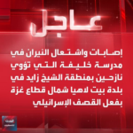 Shortly before 1:55 AM on October 17, 2024, one civilian was killed, a number of civilians were injured and one person was reported missing as a result of the alleged Israeli bombardment on the Khalifa bin Zayed School located in Sheikh Zayed neighborhood, east of Beit Lahia city, north of the Gaza Strip. The third floor of the school that was sheltering displaced people caught fire.