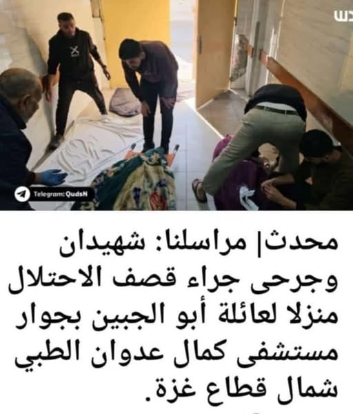 On December 17, 2024, two civilians were reportedly killed in an alleged Israeli strike near Kamal Adwan Hospital in the northern Gaza Strip. The victims were identified as Mahmoud Jihad Abu al-Jubain and his cousin Baraa Abdul Rahman Abu al-Jubain, who were killed in front of the hospital gate while attending a funeral for their aunt and cousin, who had been killed shortly before (assessed separately in ISPT171224ea).