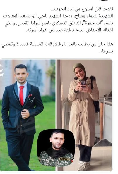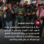 The strike also killed Naji Maher Abu Seif (also known as Abu Hamza), the spokesperson for the Al-Quds Brigade. The “Islamic Jihad Movement in Palestine” announced his death. As such, Naji Maher Abu Seif has been categorised as a militant, and has not been included in the civilian casualty count for this incident. Naji Maher Abu Seif was the husband of Shimaa Wishah and the brother of Ghassan.