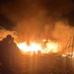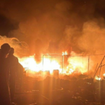 A night time image of a large fire, reportedly showing the site of the attack, also circulated on social media.