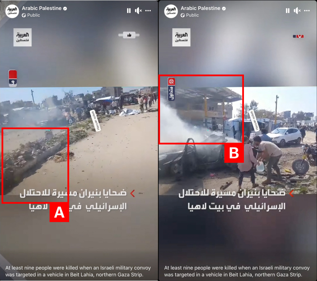 On Facebook, Al-Arabiya shared a video where a vehicle can be seen crushed and ablaze, with civilians trying to extinguish the fire with water.