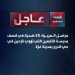 At least 25 civilians, including at least two women and three children, were killed and a number of civilians were injured in an alleged Israeli airstrike on Al-Tabi’in School, which hosted hundreds of displaced people at the time of the strike in the Al-Daraj neighborhood of Gaza City around 2 am on Tuesday, March 18, 2025.