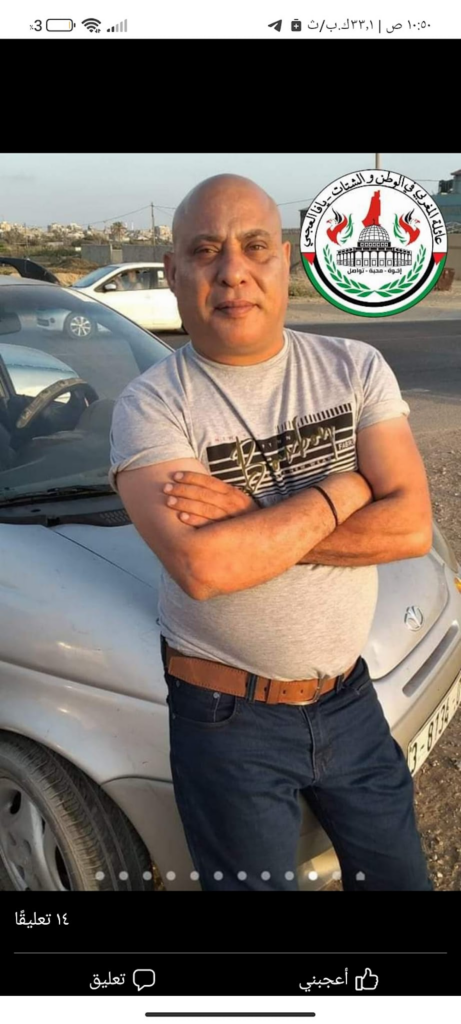 The elderly Jawdat Darwish al-Maghribi (Abu Darwish), Ahmed Jawdat al-Maghribi, Ahmed’s two wives, his five sons Fadi, Rafi, Zein, Abdullah, and Moataz were killed. A post on the Facebook page “al-Maghribi Family in the Country – Jaffa City” read “the al-Maghribi family in the homeland and diaspora mourns the martyrdom of the head of the family, al-Hajj Jawdat Darwish Darwish Maghribi (Abu Darwish)…..and all members of the family”
