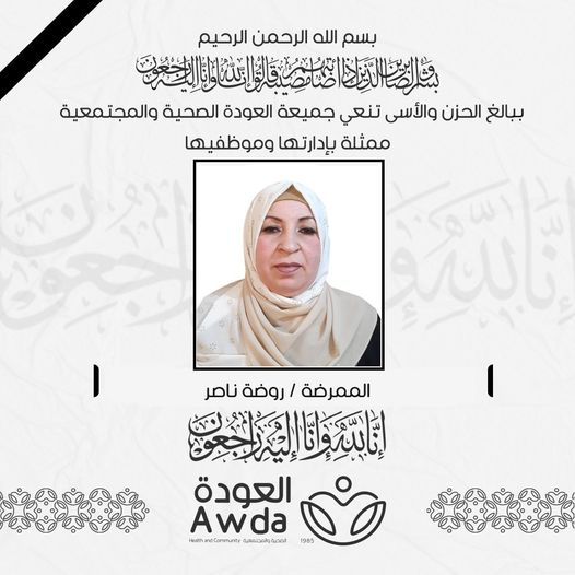 Another of Dina’s aunts, the wife of Maher Al-Shanbari, Rawda Ali Nasser (Umm Qusay) was also killed alongside her three children – a son and two daughters. The death of Rawda was mourned in a tribute by AWDA Health & Community Association where she was remembered as a nurse and colleague who used to work at the Al Awda Health and Community Center – Beit Hanoun. AWDA wrote “to the martyrs who are more honorable than us all… a thousand mercy” and shared an image of Rawda, a middle aged woman in a white hijab.