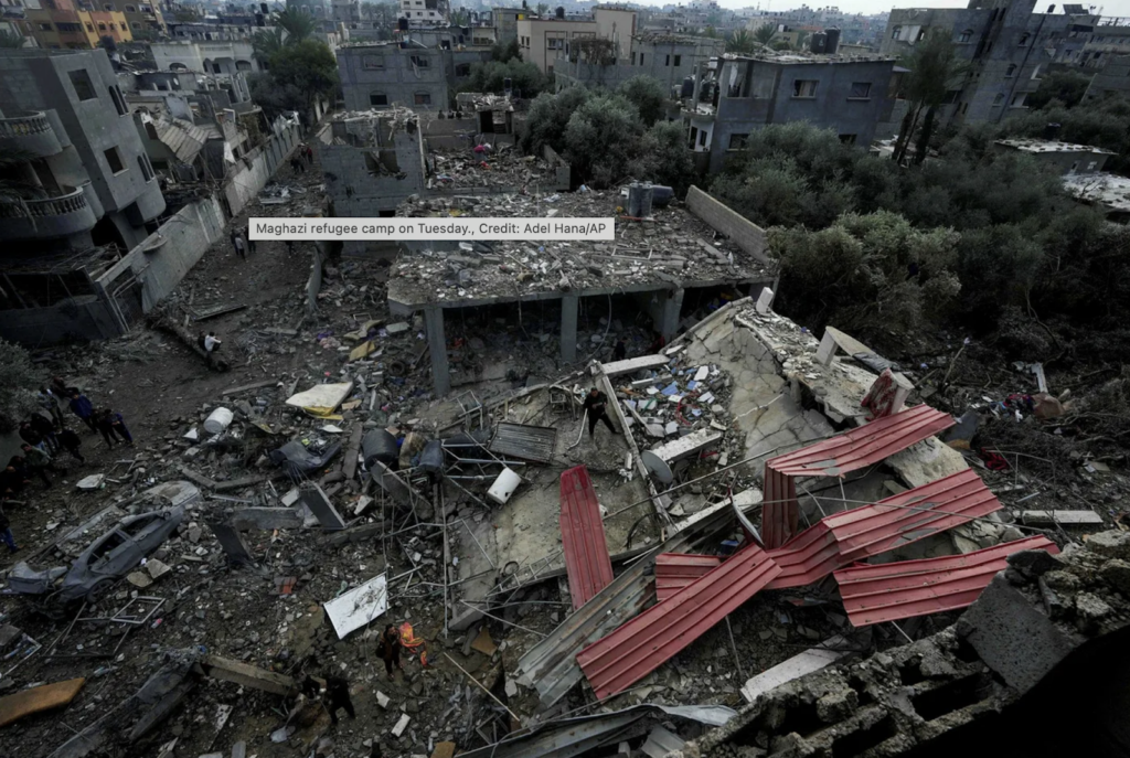 Israeli airstrikes killed as many as 106 civilians in a series of attacks on the Al Maghazi camp on December 24th, 2023. The Israeli military which acknowledged the attack, claiming that it was targeting Hamas operatives. Israeli forces admitted to the “unintended” harm to civilians, due to “mistakenly” having hit adjacent structures. Military officials also reported that they had used the wrong weapon.