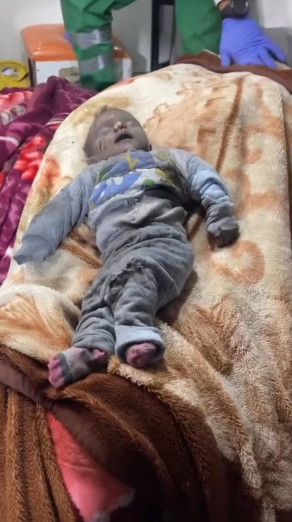 A Twitter/X video by @sI3RAlpzpeAAjjv also showed bodies of the dozens of victims in the hospital of Al-Aqsa and people who came to search for their relatives. A Twitter/X account @palestino_free shared a graphic image of a dead infant accompanying a caption relating the image to the incident in Al-Maghazi camp.