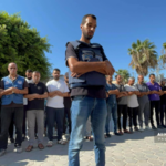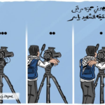 Many social media posts featured images of the late Hamza – a young man with a dark beard. In an image taken by Fadi Al-Wahidi he is seen smiling in a red pullover with the inscription “Batman”. A photo posted on Facebook by AJA.Palestine showed a body wrapped in a shroud with a press vest on top of it, identified as the “martyred journalist Hamza Murtaja.”