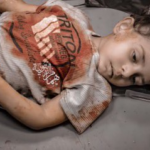 A Facebook user Mona Muhammad shared a graphic picture showing four children’s bodies lying on the floor of a hospital with their clothes soaked with blood. Summer Helmy added more graphic images of the dead children, including a small girl with curly hair wearing a T-shirt fully soaked with blood.