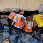 Medical Services – Gaza Strip reported that they retrieved “5 martyrs and 2 injured” with a note that “There are a number of other martyrs and injured who were transported by other service providers.” The Medical Services account also shared a video on Facebook showing paramedics carrying the body of an injured man and the dead body of an unidentified civilian, along with another image showed a man’s body torn apart by debris.
