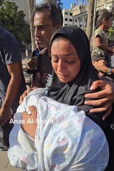 Twitter/X user @EyeonPalestine shared a graphic video of an infant girl called Siba who suffered severe burns of her face and body. The voice in the video said that girl was almost one year old, that her mother had been killed, and that this was not the first time she had been hit by an attack. According to the video, the infant Siba was in critical condition at the time and was being transferred to Kamal Adwan Hospital. Twitter/X user Quds News Network (@QudsNen) shared a video of another infant with severe burns being treated at the hospital.